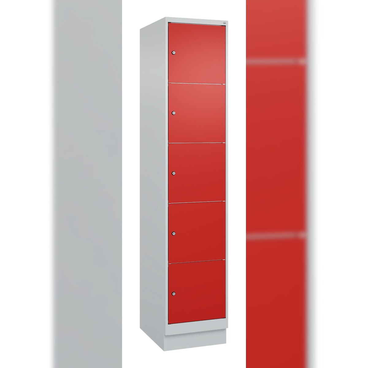 C+P Schließfachschränke Classic PLUS, Sockel, 5 Abteile, HxBxT 195x40x50cm, Zylinderschloss, Hellgrau/Rot von PROREGAL