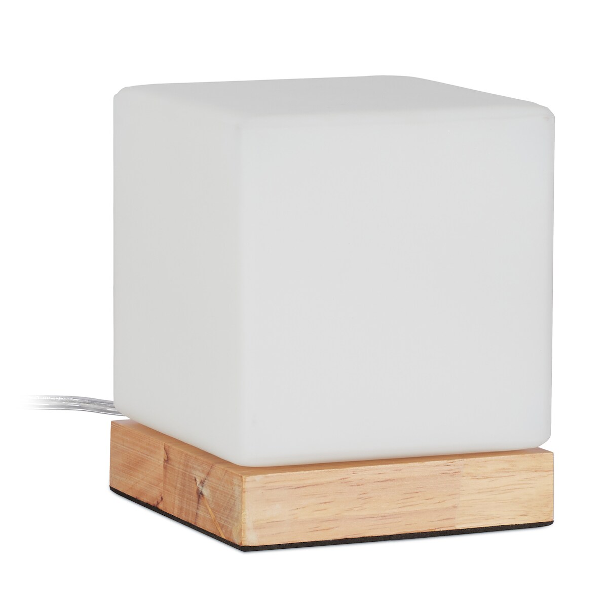 Relaxdays Tischlampe Würfel, Wohn- & Schlafzimmer, Holz & Milchglas, E14 Nachttischlampe, 15 x 12 x 12 cm, weiß/natur
