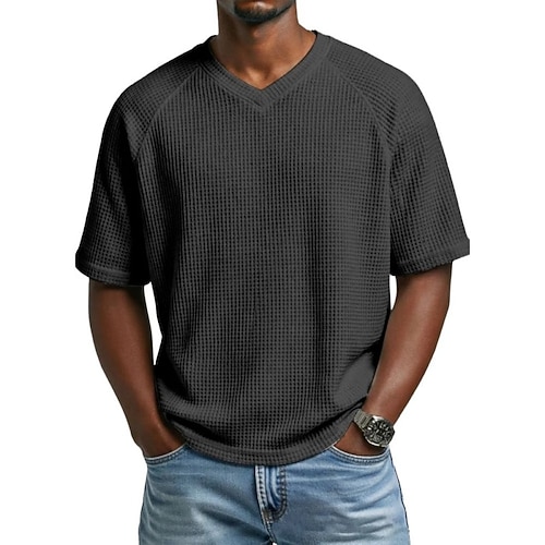 Per uomo Maglietta Waffle Maglietta Camicia a Maniche Corte Manica Corta Scollo a V Estate Primavera Tinta unica Vintage Streetwear Elegante Manica corta Quotidiano All'aperto Vacanza Grigio scuro