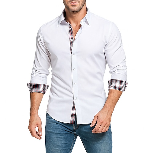 Per uomo Camicia Camicia elegante Camicia casual Camicia con Bottoni Semplice Formale Matrimonio Blu Bianco Rosso Manica Lunga Bavero Estate Primavera Abbigliamento Patchwork