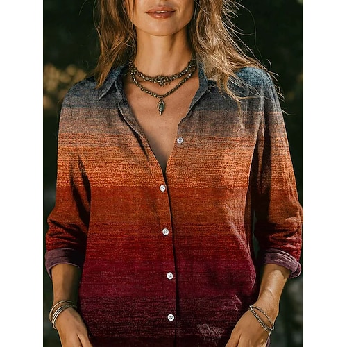 Per donna Camicia Blusa Ombre Grafico Geometrico Vintage Casual Manica Lunga Colletto a Camicia Top Regolari Quotidiano Patchwork Bottoni Stampato Blu Arancione Estate Primavera Autunno Inverno