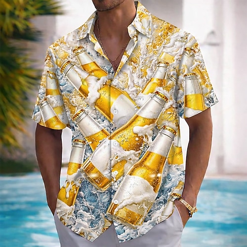 Per uomo Birra Bere bevanda Camicia hawaiana estiva Camicia con Bottoni Camicia Aloha Manica Corta Hawaiano Vacanza Abbigliamento mare Estate Primavera Collo ripiegato Stampa 3D camicie con colletto