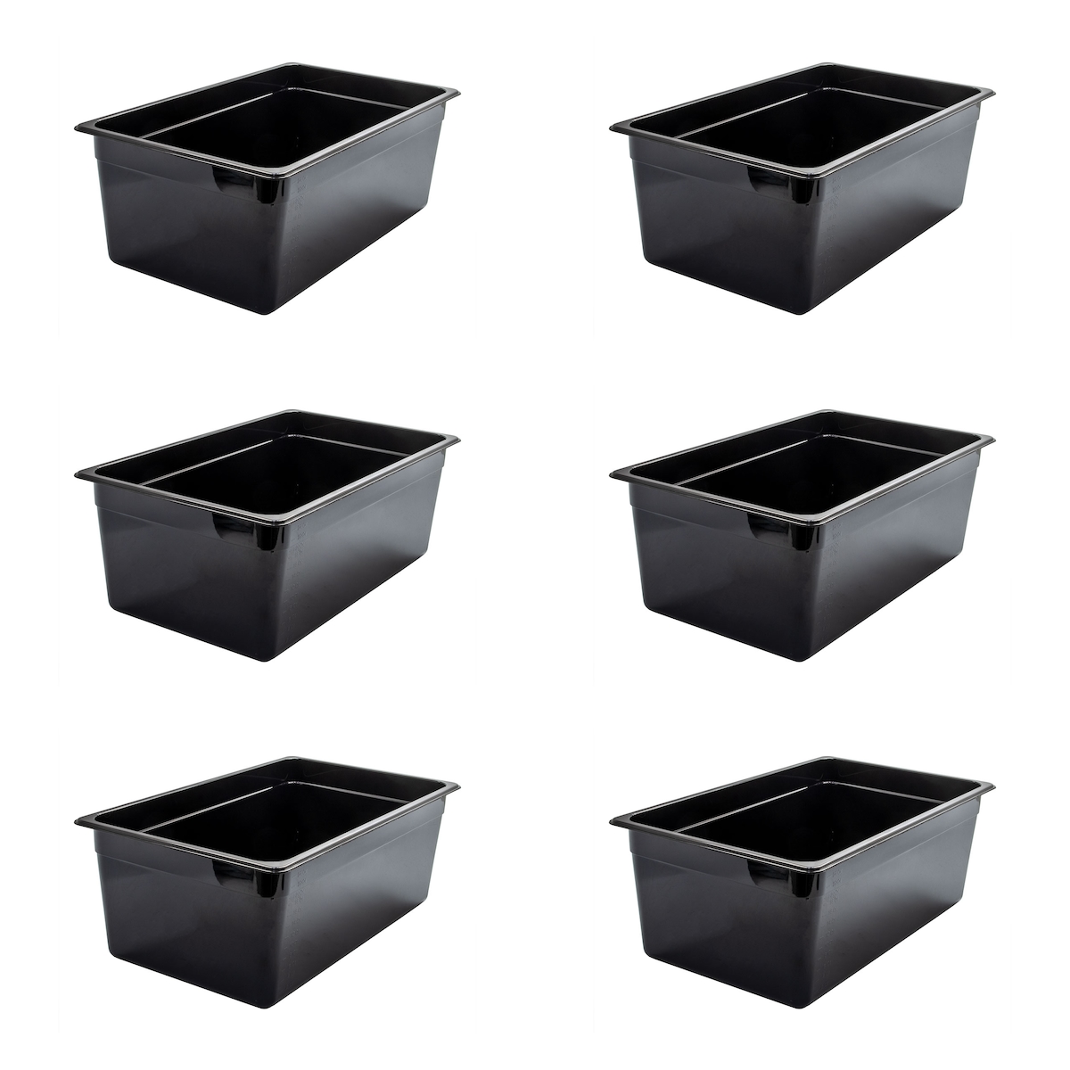 AcMax 6 Stück Kunststoff GN 1/1 Polycarbonat schwarz Gastronormbehälter GN-Behälter 28 Liter Tiefe 200mm