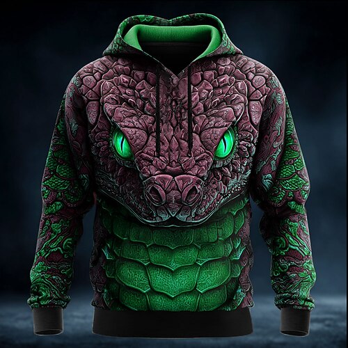 Per uomo 3D Serpente Felpa con Cappuccio Felpa Cool Festa Manica Lunga Girocollo Club Abbigliamento casual alla moda Giallo Rosso Blu Verde Coulisse Autunno Inverno progettista S M L XL XXL XXXL