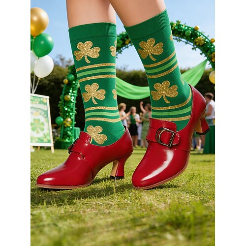 décolleté vintage in similpelle verde da donna con fibbia – eleganti scarpe con tacco a gattino per il giorno di San Patrizio, calzature per le feste