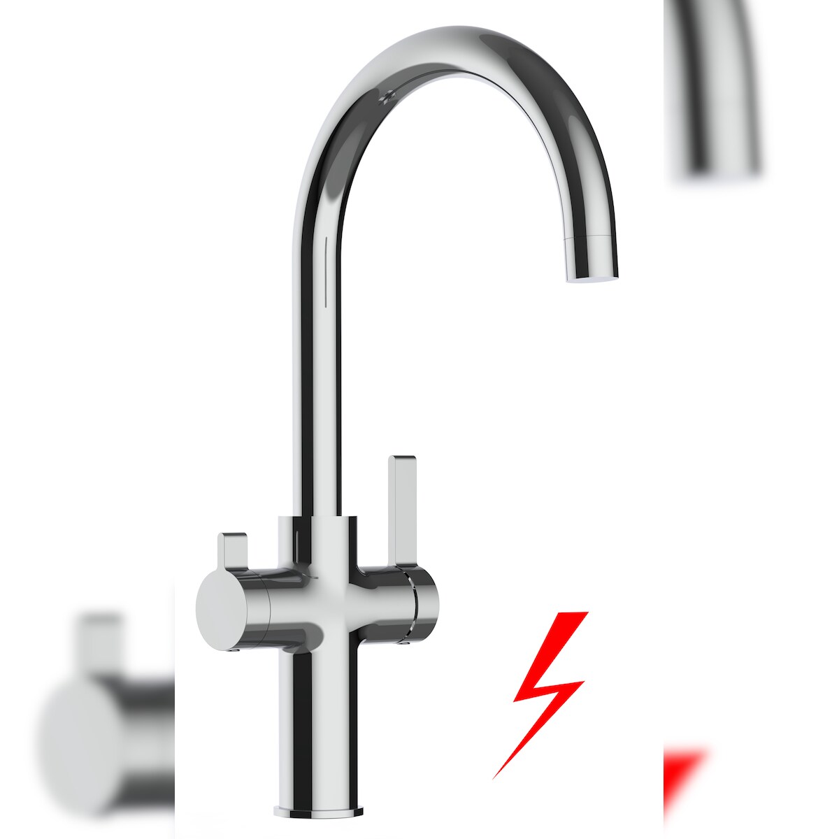 Vizio Niederdruck 3 Wege Wasserhahn Küchenarmatur Spültischmischer FC, Verchromt mit 360° schwenkbarem U-Auslauf