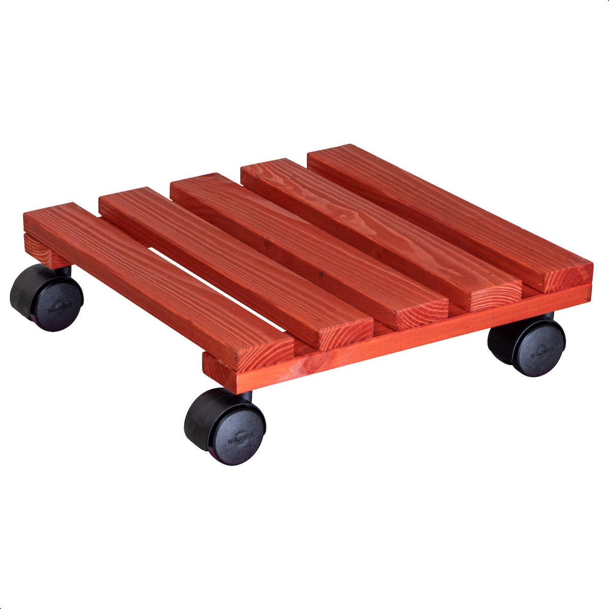 WAGNER Pflanzenroller NATURE 29 x 29 x 8 cm, für Innen, Massivholz, ziegelrot, Tragkraft 100 kg, EU Ware - 20088601