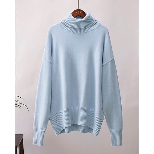 Per donna Felpa Maglione Vintage Moda Streetwear Tinta unica Dolcevita Lavorato a maglia Manica Lunga Top Regolari Maglia Quotidiano Ferie Uscire Nero Bianco Autunno Inverno