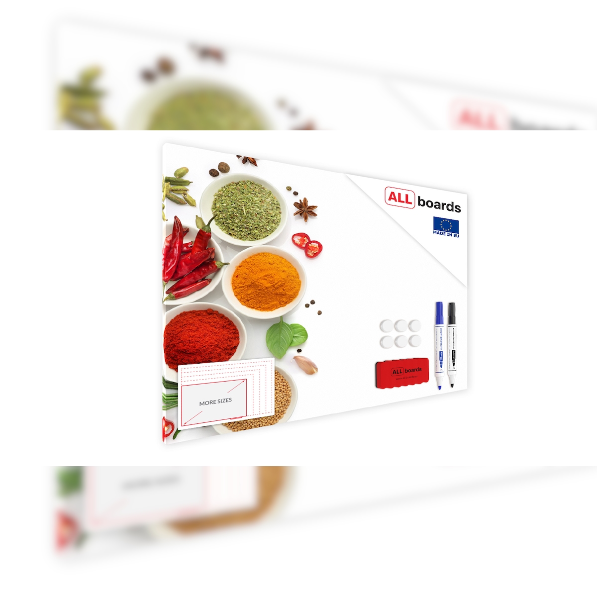 ALLboards Metallische Magnettafel GEWÜRZE KRÄUTER 60x40cm Memoboard für jede Art von Magneten + 4 Marker, 10 Magnete und Schwamm im Lieferumfang