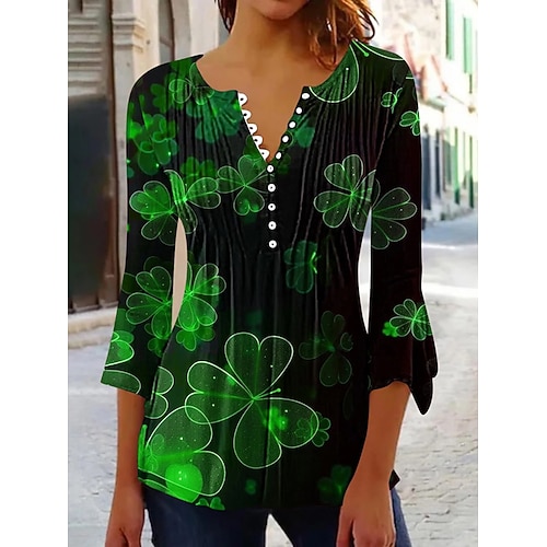 Festa di San Patrizio Per donna Blusa Ombre Floreale Grafico Elegante Classico Manica 3/4 Scollo a V Top Regolari Quotidiano Uscire Volant Bottoni Nero Verde Estate Primavera Autunno