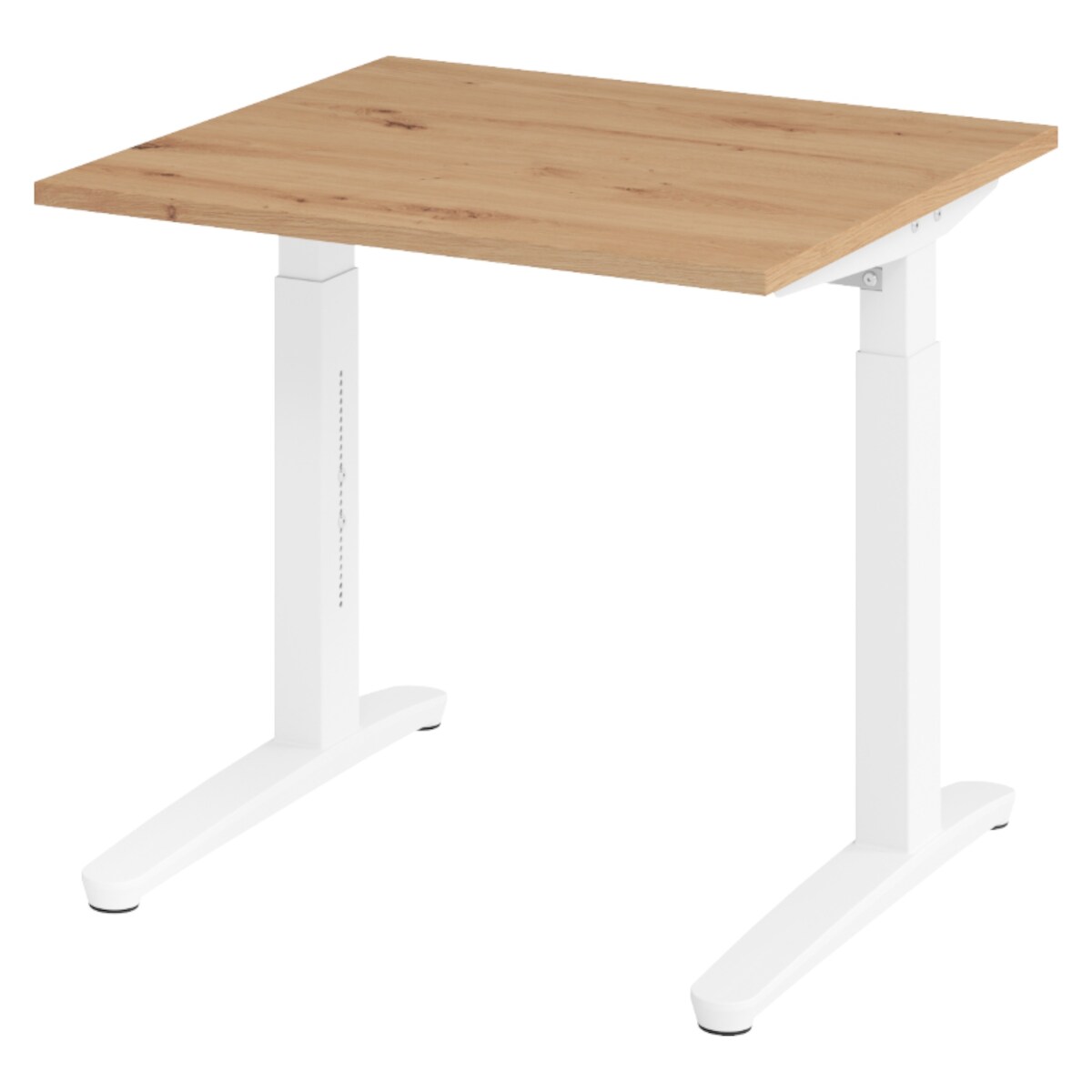 bümö manuell höhenverstellbarer Schreibtisch 80x80 in Asteiche, Gestell in weiß - PC Tisch höhenverstellbar & klein, höhenverstellbarer Tisch Büro,