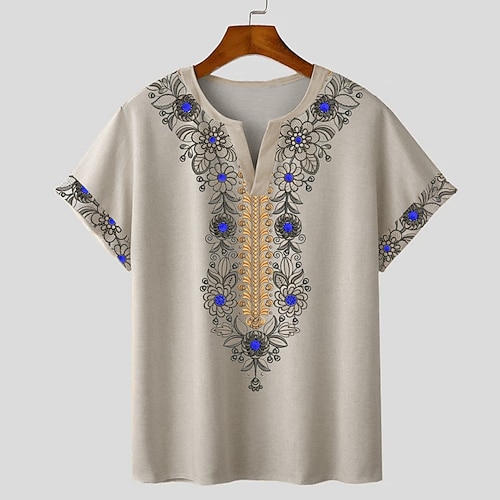 Per uomo Stampa bandana Maglietta Manica Corta maglietta Stampa 3D Scollo a V Camicia Designer Boho Vacanza Quotidiano Blu chiaro Rosa Grigio Estate Primavera Abbigliamento Normale S M L XL XXL XXXL