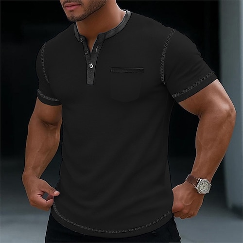 Per uomo Maglia Henley a nido d'ape Maglietta Manica Corta Henley Estate Tutte le stagioni Tinta unica Semplice Moda Designer Casual Blocco di colore Bottoni All'aperto Casuale Quotidiano Nero Bianco