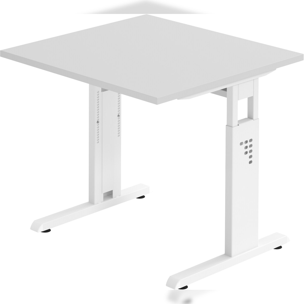 bümö höhenverstellbarer Schreibtisch H-Serie 80x80 cm in weiß, Gestell in Silber - PC Tisch klein für's Büro manuell höhenverstellbar, Computertisch