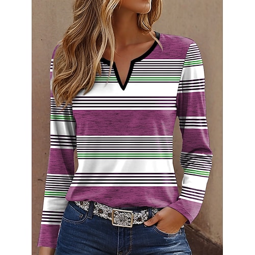 Per donna Maglietta Grafico A righe Vintage Elegante Classico Manica Lunga Collo a V Top Regolari Quotidiano Weekend Stampato Blu Viola Marrone Verde Primavera Autunno Inverno