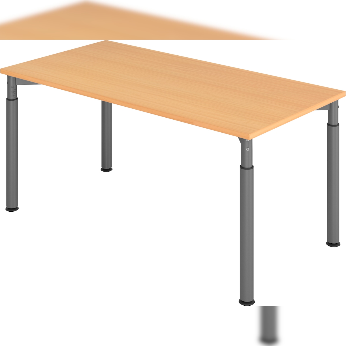 bümö manuell höhenverstellbarer Schreibtisch 200x100 in grau, Gestell in silber - PC Tisch höhenverstellbar & groß, höhenverstellbarer Tisch Büro,