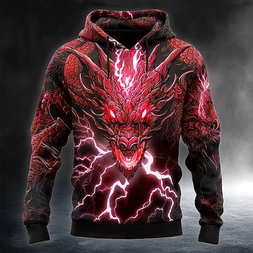 Per uomo Drago Stampa 3D Felpa con Cappuccio Felpa 3D Fantasia Manica Lunga Girocollo Regalo Club Abbigliamento casual alla moda Giallo Rosso Blu Verde Coulisse Autunno Inverno progettista S M L XL