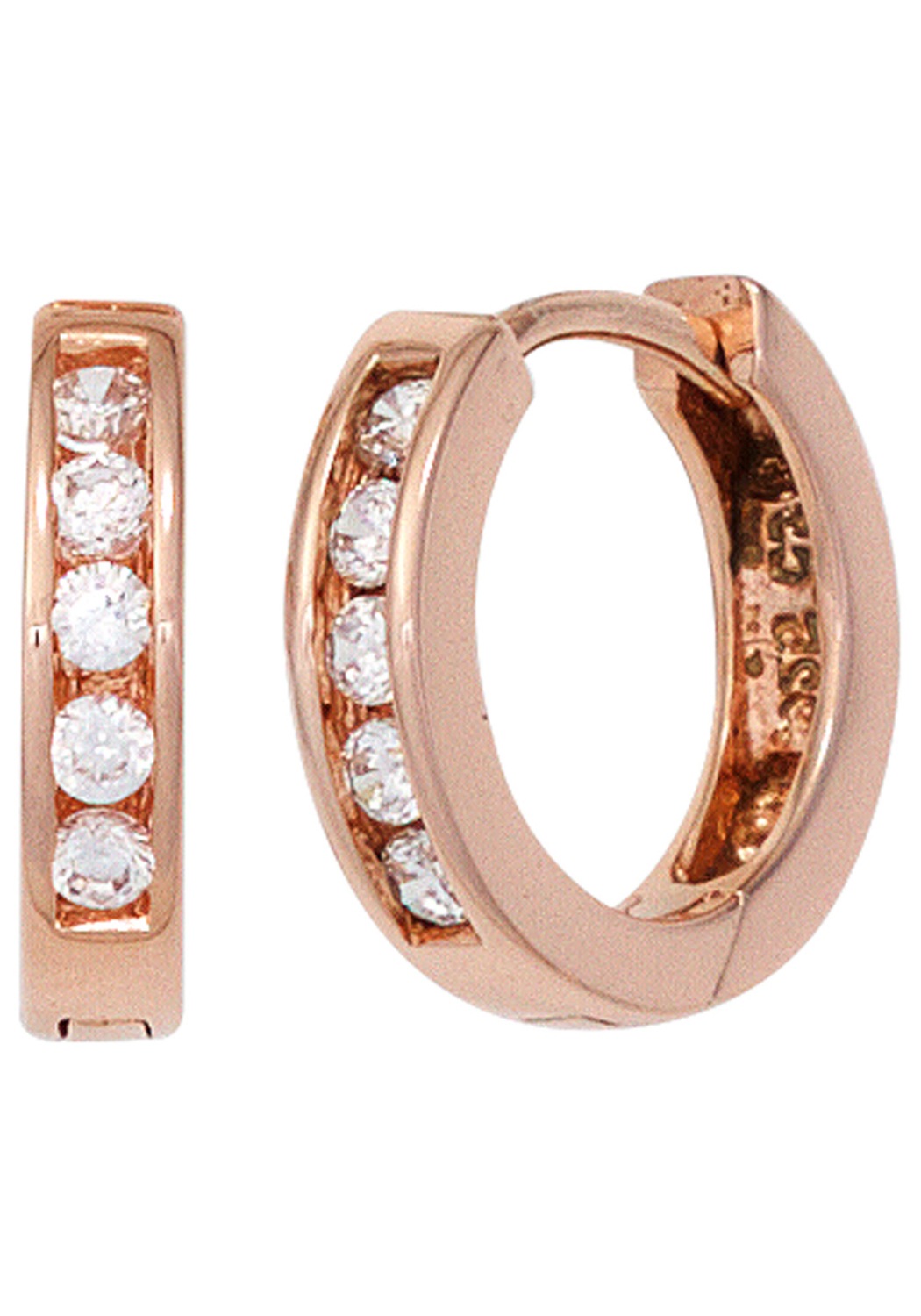 Paar Creolen JOBO, rosa (roségoldfarben), Ohrringe, Damen, Silber 925 (Sterlingsilber), rund 925 Silber roségold vergoldet mit Zirkonia