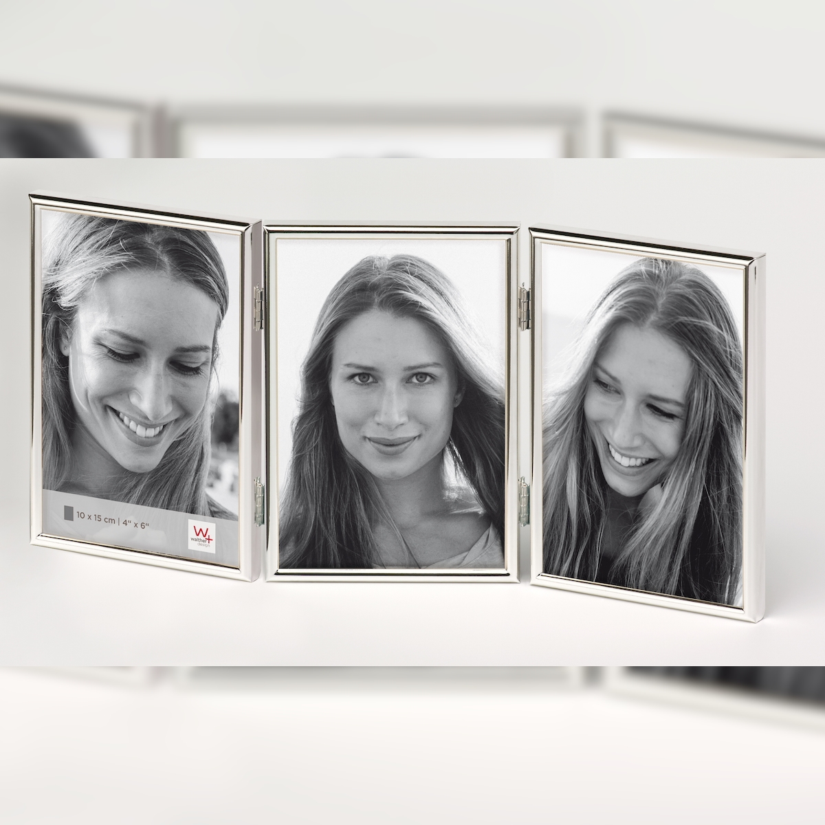 walther + design Chloe Portraitrahmen, silber, 3x 10x15 cm