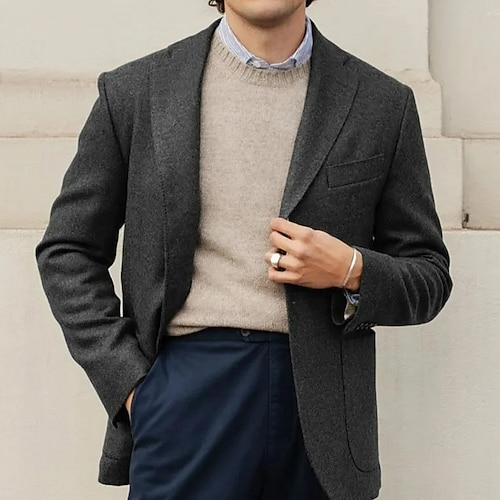 Uomo Affari Casuale Completi in Tweed Bavero classico Nero Grigio chiaro Quotidiano Formale Tinta unita Vestibilità su misura 3 pezzi Monopetto Due Bottoni