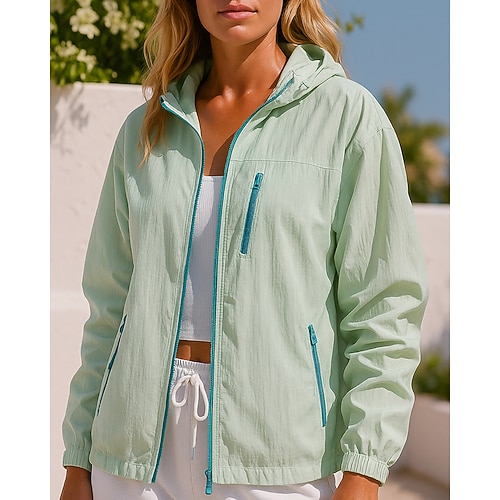 Per donna Giacca con cappuccio Giacca sportiva Con zip Tasca Manica Lunga Top Athleisure Autunno Tinta unita Protezione Solare Leggero All'aperto Viaggio Sportivo abbigliamento sportivo Abbigliamento