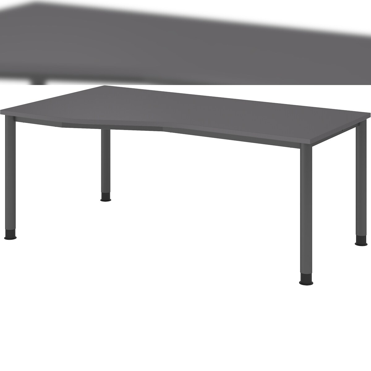 bümö höhenverstellbarer Schreibtisch U-Serie 180x80 graphit, Gestell in weiß - großer PC Tisch für's Büro manuell höhenverstellbar, Computertisch