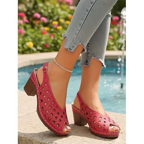 Per donna Casuale Quotidiano Viaggio Tacco grosso Peep Toe Casual Finta Pelle Fibbia Nero Rosso Beige