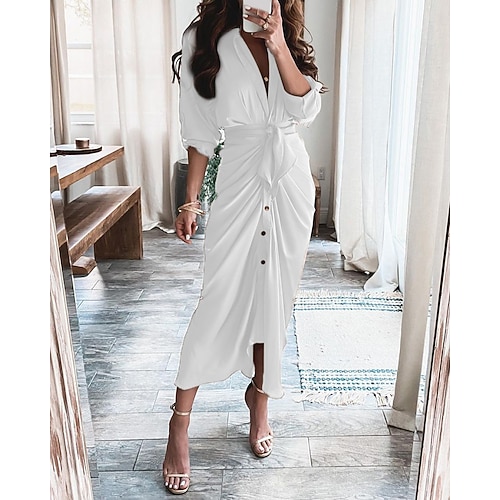 Per donna Abito Midi Tubino Vestito in Chiffon Moda Moderno All'aperto Ferie Uscire Vestibilità regolare Semplice Manica Lunga Scollo a V Bianco Giallo Cachi Azzurro Primavera Autunno