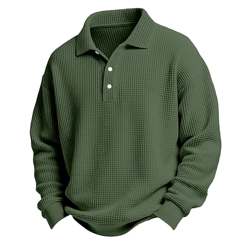 Per uomo Magliette Polo a Nido d'Ape Testurizzato Casuale Ferie Bavero Manica Lunga Cool Semplice Stile Classico Autunno Primavera Autunno Tutte le stagioni Vestibilità regolare Bianco Verde chiaro