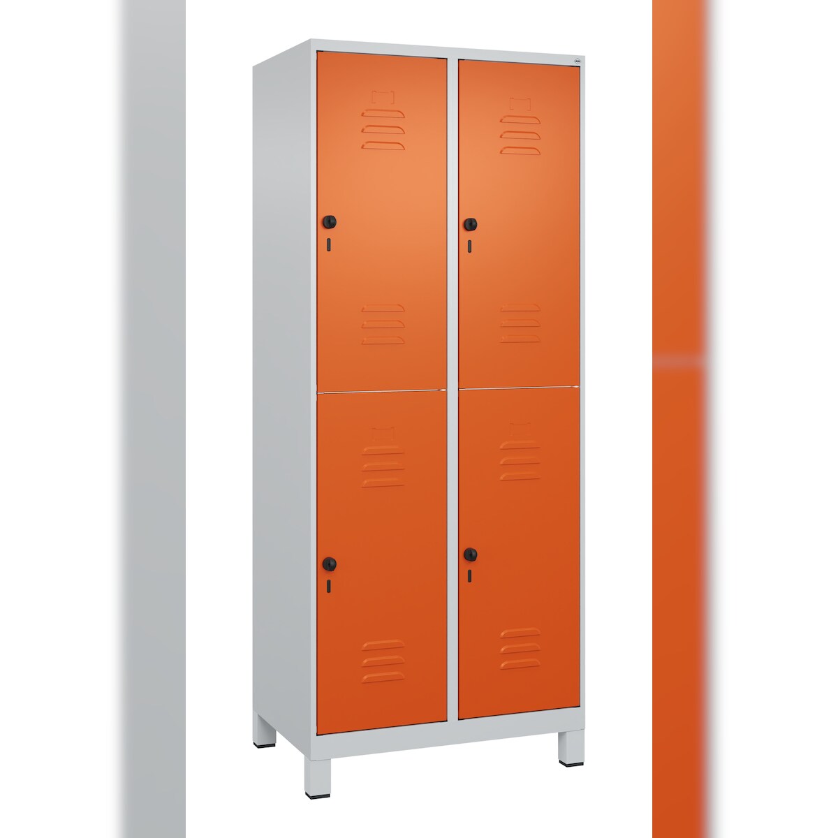 C+P Spind Classic PLUS, Füßen, 4 Abteile, HxBxT 195x80x50cm, Sicherheitsdrehriegel, Hellgrau/Reinorange von PROREGAL