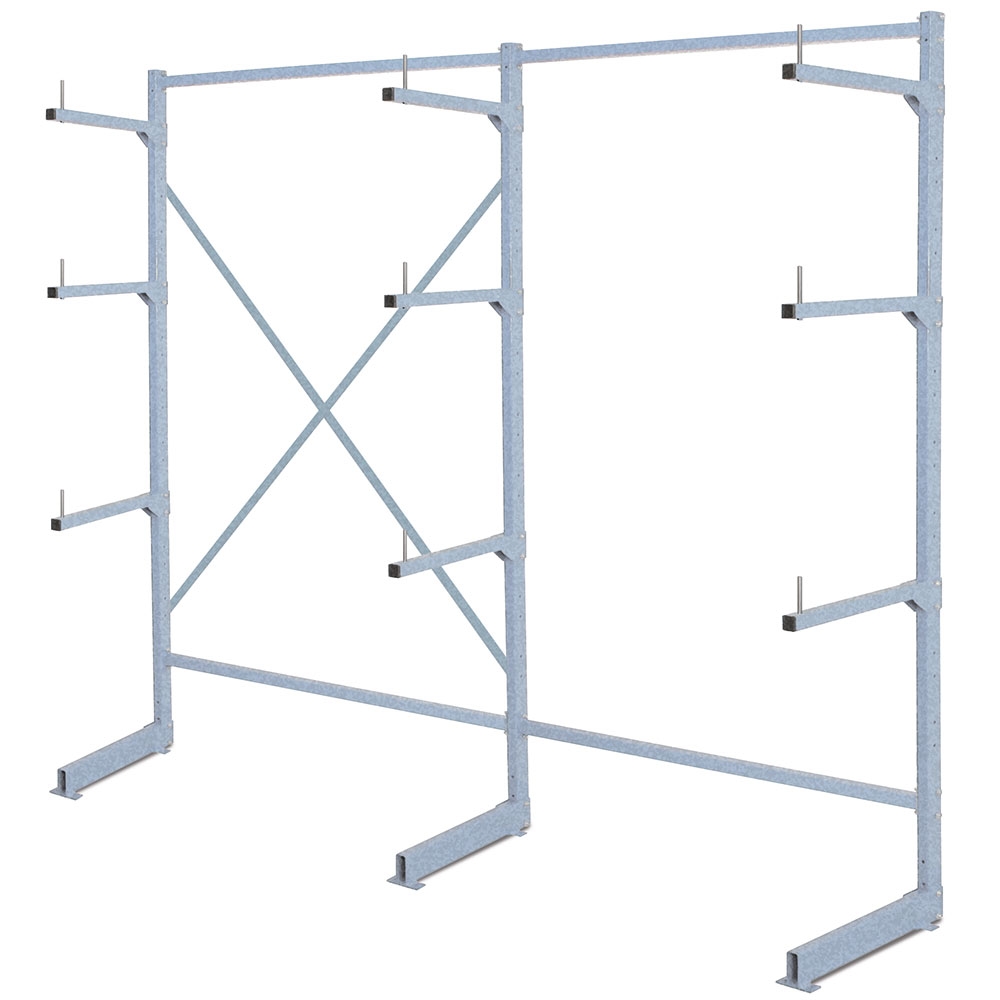 BRB Kragarmregal komplett, verzinkt, HxBxT 1950 x 2090 x 450 mm, 3 Ständer und 9 Arme mit Abrollsicherung