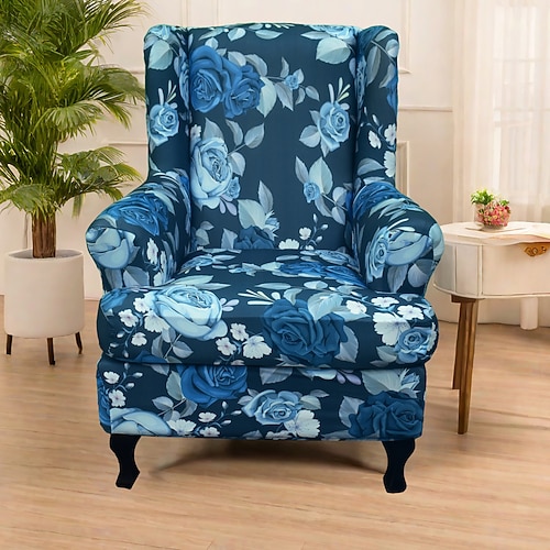 Copripoltrona con schienale alto, copripoltrona in poliestere stampato con motivi geometrici a righe floreali, copripoltrona pieghevole in stile coreano moderno, copripoltrona