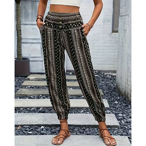 Per donna Pantaloni Affusolati Chinos Vacanza Streetwear Casual Lunghezza intera Vita media Grafico Fascia Elastica Stampa Comodo Micro-elastico Quotidiano All'aperto Streetwear Marrone Scuro Bianco