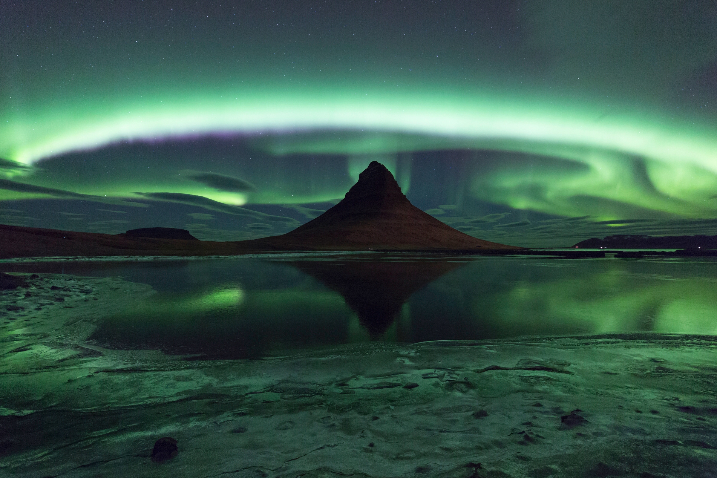 Fototapete PAPERMOON "Photo-Art PHILIP EAGLESFIELD, KIRKJUFELL AURORA", bunt, B:5,00m L:2,80m, Vlies, Tapeten