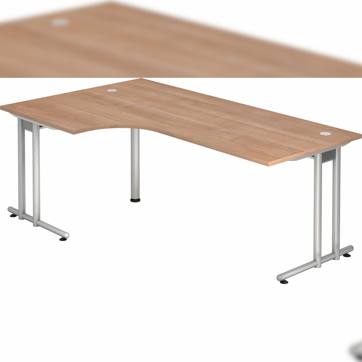 bümö Eckschreibtisch groß, N-Serie 200x120 cm, Tischplatte aus Holz in Nussbaum, Gestell aus Metall - Schreibtisch L Form, großer Tisch für's Büro,