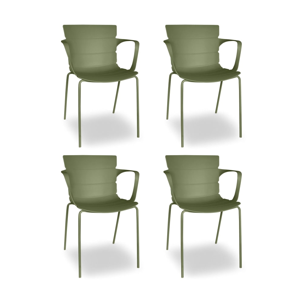 Lot de 4 fauteuils de table vert en polypropylène et métal