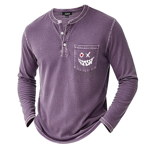 Per uomo Astratto Maglia Henley Maglietta Manica Lunga Retrò Vintage Casual Casuale Primavera Autunno Tutte le stagioni Blu Verde Arancione Henley Maglietta Henley