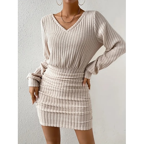 Per donna Mini Abito Abito nero Tubino Elegante Moda Moderno Quotidiano Uscire Weekend Vestibilità regolare Semplice Manica Lunga Scollo a V Nero Vino Cachi Blu scuro Primavera Autunno Inverno