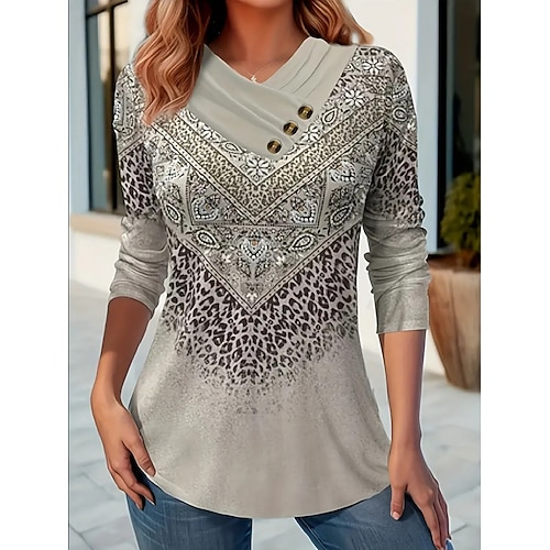 Per donna Maglietta Grafico A righe Vintage Elegante Casual Manica Lunga Scollo a V Top Regolari Quotidiano Weekend Bottoni Stampato Verde chiaro Blu Verde Grigio Autunno Inverno