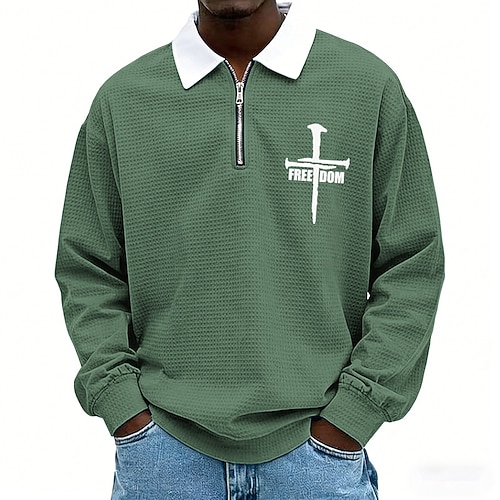 Per uomo Magliette Polo a Nido d'Ape Polo Vacanza Streetwear Zip a un quarto Manica Lunga Moda Essenziale Blocco di colori Croce Patchwork Primavera Autunno Vestibilità su misura Nero Verde militare