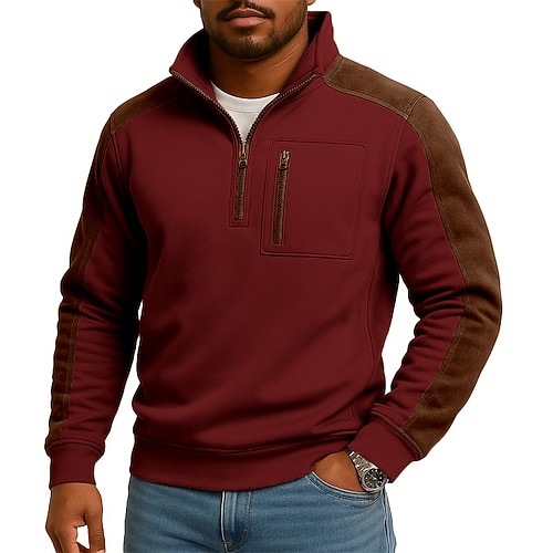 Per uomo Maglia Felpa con zip corta Nero Blu marino Marrone Grigio Mezza zip Blocco di colori Cavallo Patchwork Sport Outdoor Quotidiano Ferie Poliestere Vintage Essenziale Casual Autunno Inverno