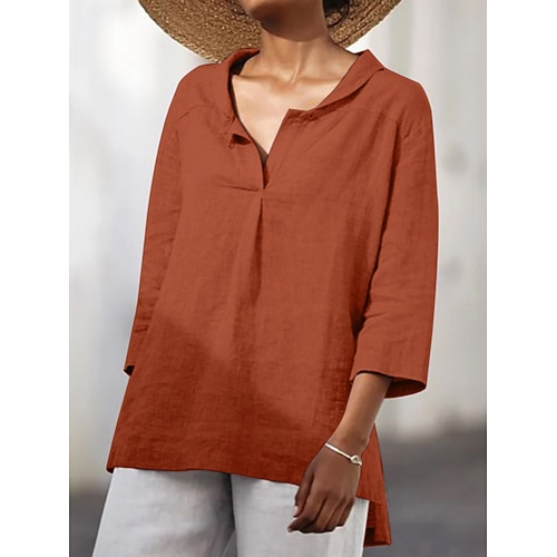 Per donna Blusa Tinta unica Elegante Casual Manica 3/4 Scollo a V Top Regolari Quotidiano Ferie Bottoni Nero Bianco Arancione Estate Primavera