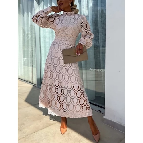 Per donna Abito Midi Abito a trapezio Casual Quotidiano Vestibilità regolare Semplice Manica 3/4 Collo Alto Nero Bianco Giallo Fucsia Primavera Autunno