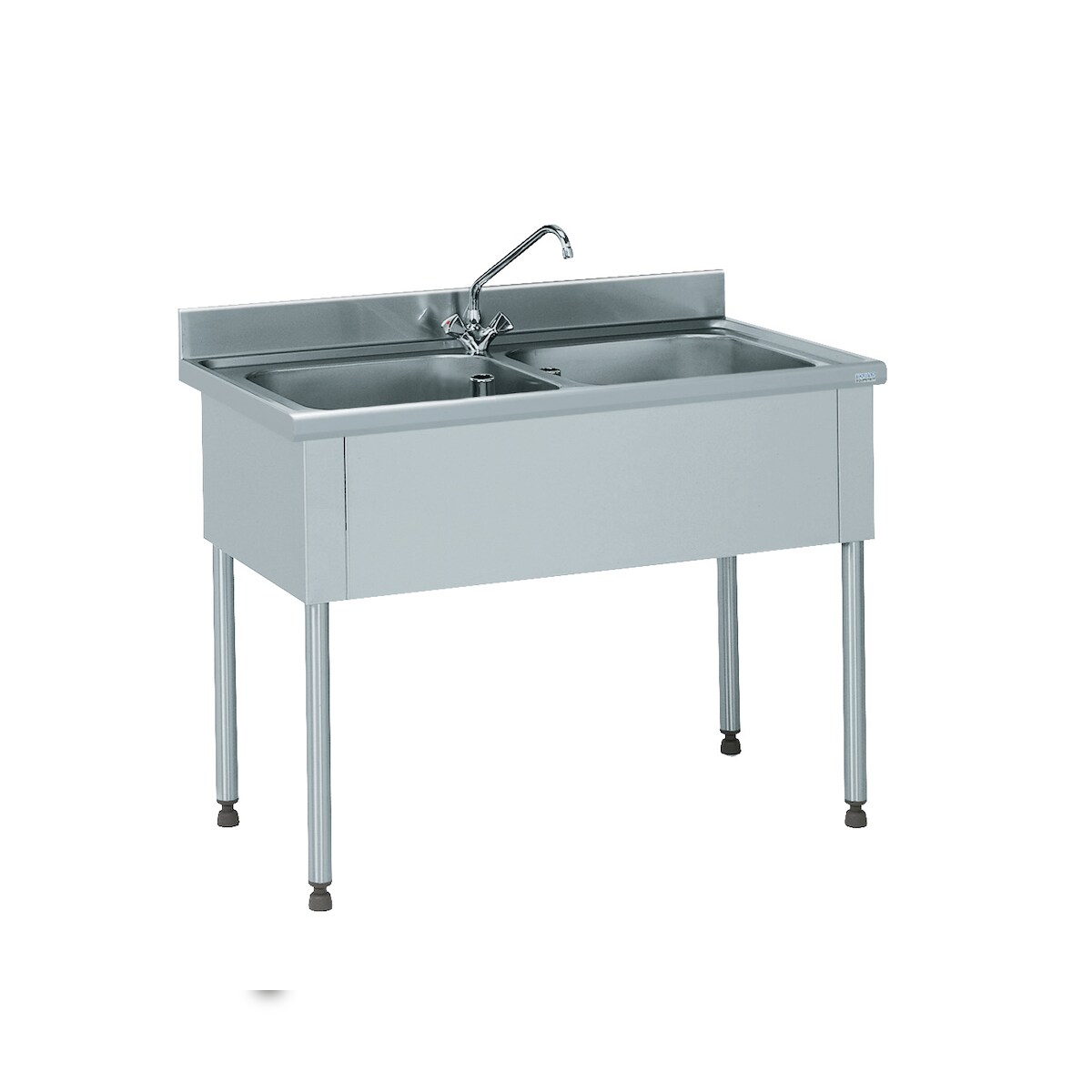 Tournus Spüle 1200 x 600 x 900mm mit 2 Becken 500 x 500 x 250mm. 3-seitig verkleidet, Aufkantung 100mm. Mit Armatur. Ohne Abtropffläche.