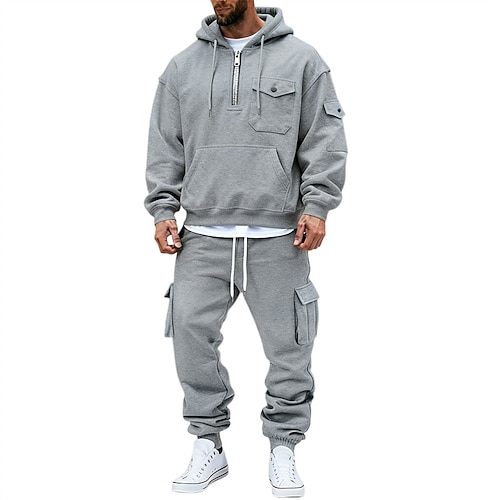 Per uomo Felpa con cappuccio Tuta da Ginnastica Felpa con cappuccio e pantaloni Impostato Felpa con Cappuccio Quotidiano All'aperto Vacanza Abbigliamento quotidiano Coulisse Tasca Mezza cerniera