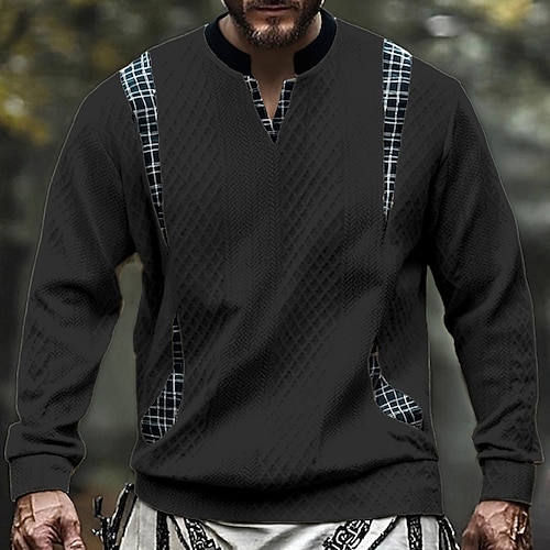 Per uomo Maglietta Camicia a Maniche Lunghe Manica Lunga Colletto Mao Primavera Autunno Blocco di colori Sottile pieghettato Moda Designer Essenziale Coulisse Patchwork Vacanza Streetwear Uscire