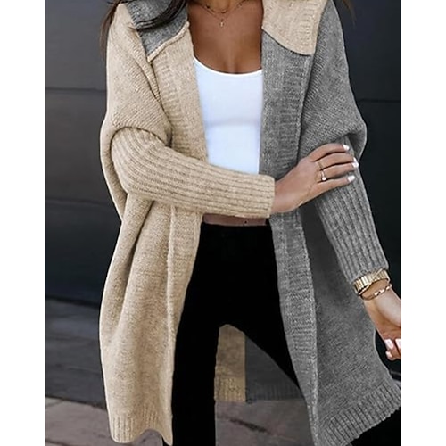 Per donna Felpa Cardigan Streetwear Casual Blocco di colori Con Cappuccio Patchwork Lavorato a maglia Manica Lunga Top lunghi Maglia Quotidiano Ferie Uscire Bianco / Nero Nero Autunno Inverno