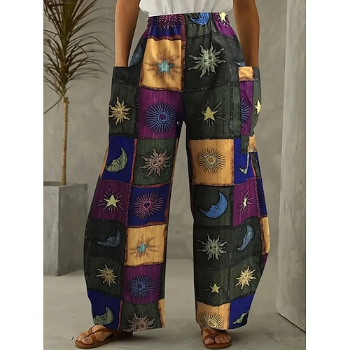 Per donna Gamba larga Pantaloni Vacanza Vintage Stile Etnico Lunghezza intera Vita Alta Grafico Blocco di colori Coulisse Tasca Fascia Elastica Comodo Traspirabilità Micro-elastico Vacanza Casuale