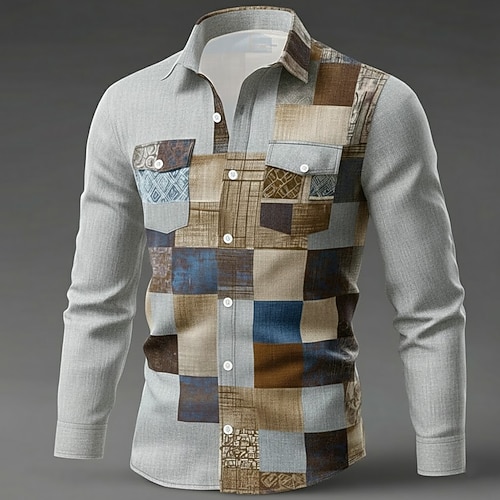 Per uomo Geometrico Blocco di colori Patchwork Camicia Camicia con Bottoni Manica Lunga Moda Casual All'aperto Abbigliamento Quotidiano Primavera Autunno Collo ripiegato Due tasche anteriori Camicia