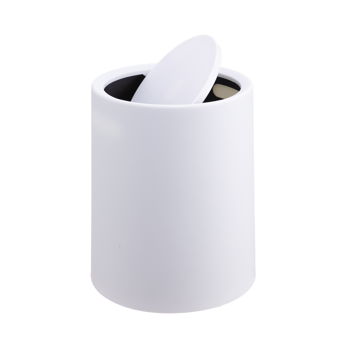 Relaxdays Kosmetikeimer, 6 Liter, mit Schwingdeckel, Inneneimer, matter Kunststoff, runder Badezimmer Mülleimer, weiß